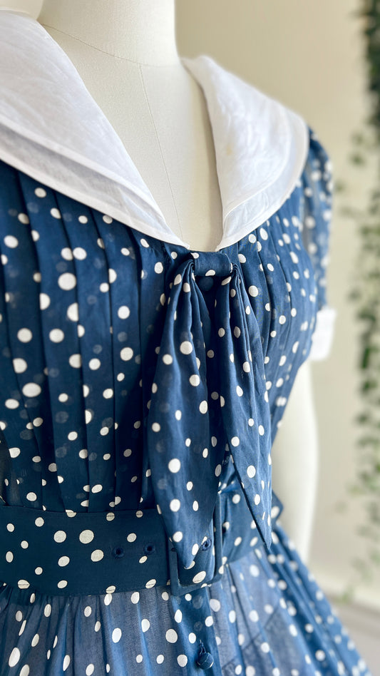1980s ALBERT NIPON Polka Dot Sailor Dress | small/medium