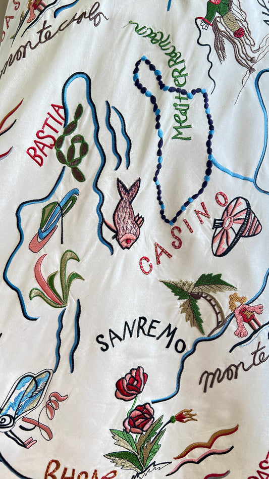 1980s Travel Novelty Embroidered Silk Dress | medium
