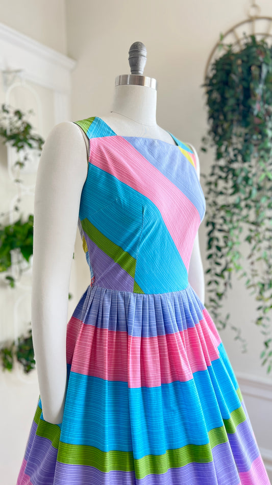 Modern 1950s Inspired Handmade Rose Striped Sundress | small/medium