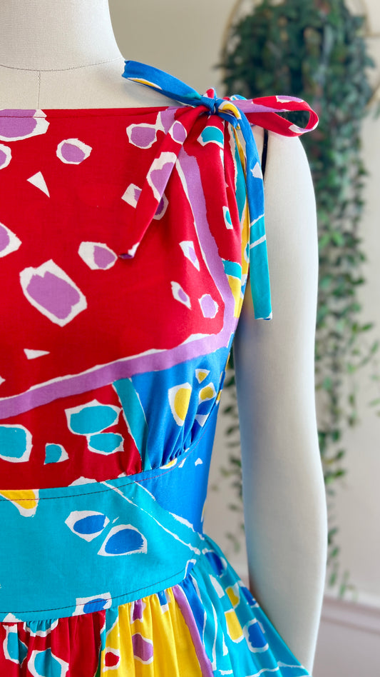 1980s 1990s DEADSTOCK Rose Tie Straps Sundress | medium