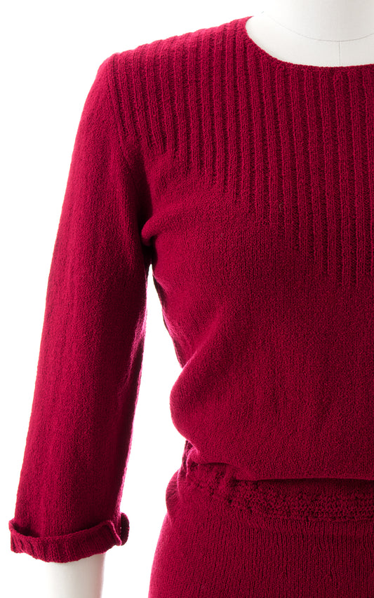 1950s Burgundy Knit Wool Sweater Dress | small/medium
