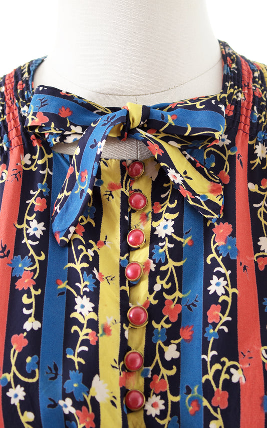 1930s 1940s Striped Floral Rayon Shirt Dress | medium