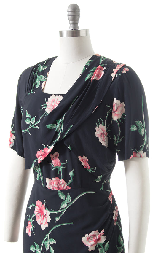 1940s Rose Rayon Crepe Cocktail Dress | medium/large