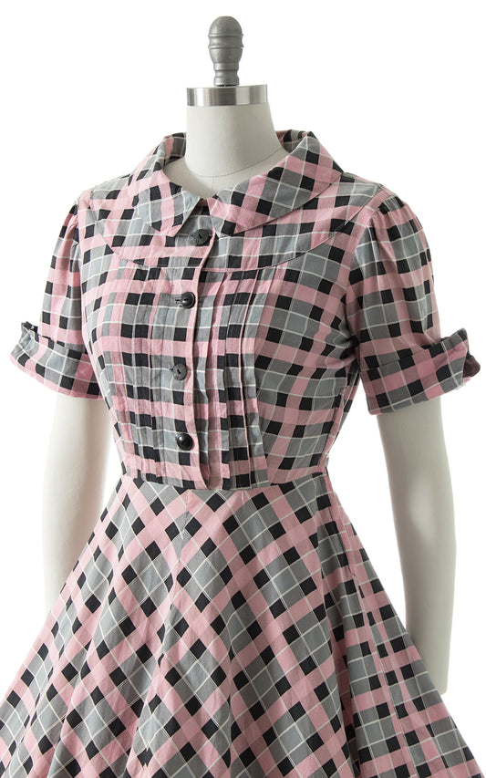 1950s Pink Plaid Cotton Shirtwaist Dress | small