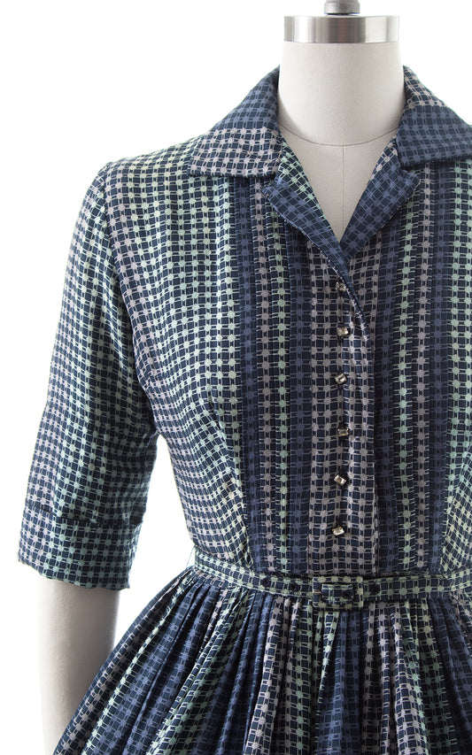 1950s Jonathan Logan Plaid Silk Shirt Dress | small