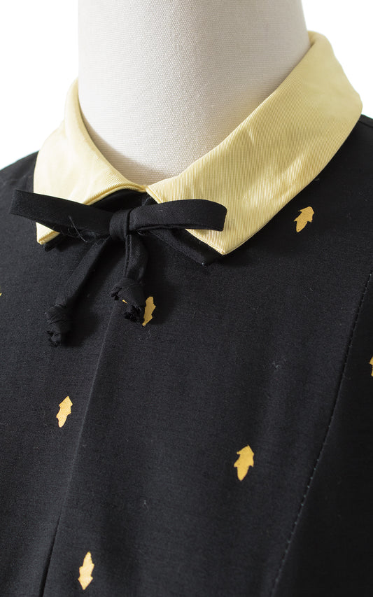 1950s Arrrowhead / Leaf Printed Drop Waist Dress | x-small/small