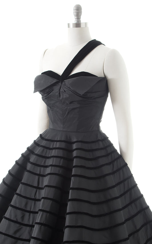 1950s Fred Perlberg Black Velvet & Taffeta Gown | small