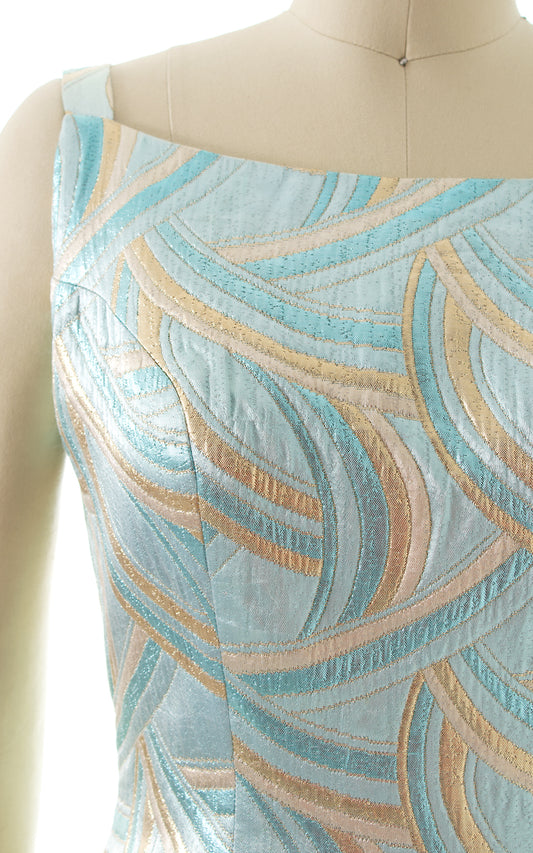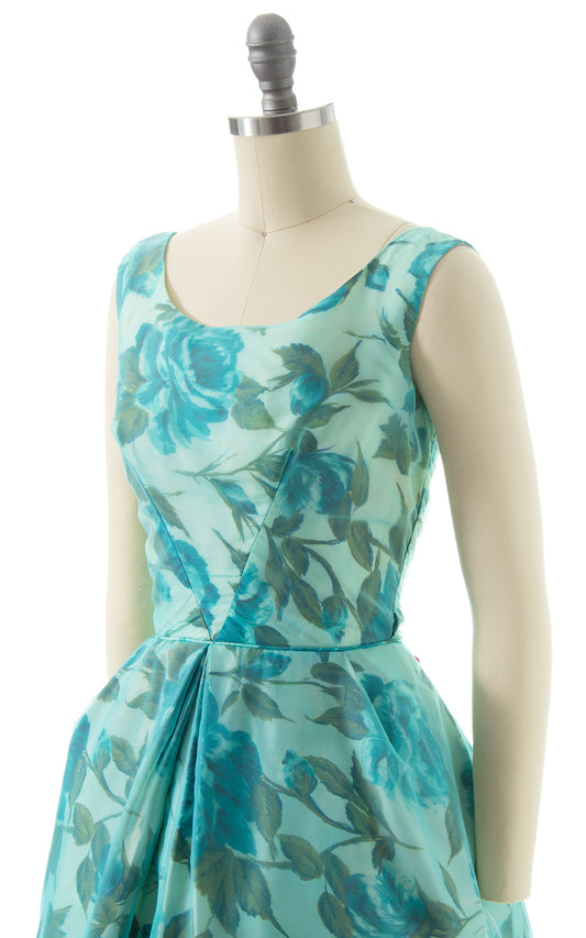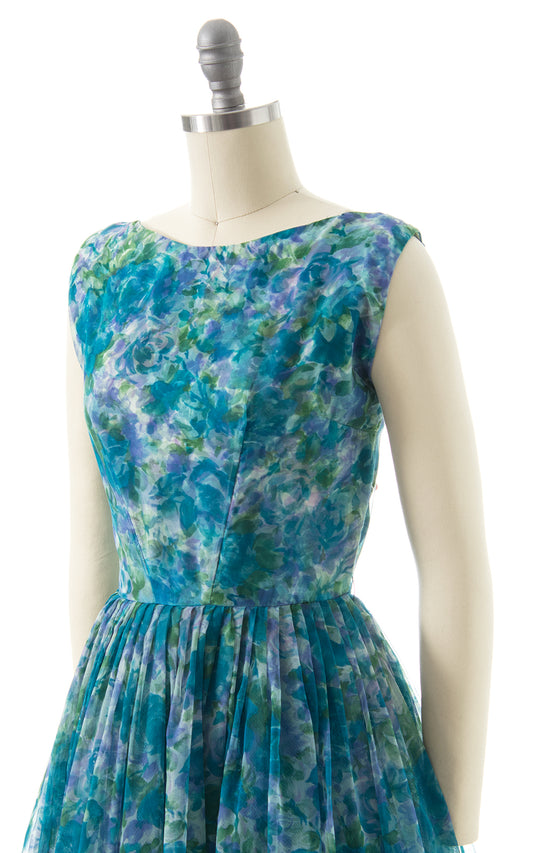 1960s Blue Rose Chiffon Overlay Party Dress | x-small/small