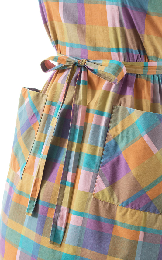 1950s 1960s Swirl Plaid Cotton Wrap Dress with Pockets | small/medium/large