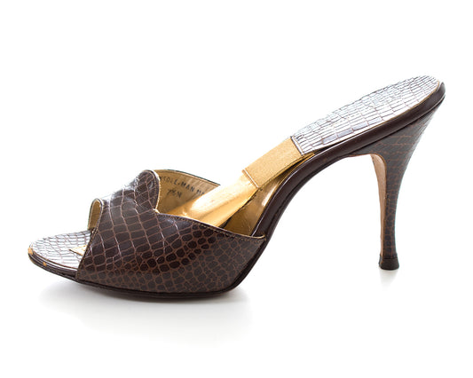 1950s Brown Reptile Textured Springolator Stilettos | size US 7/7.5