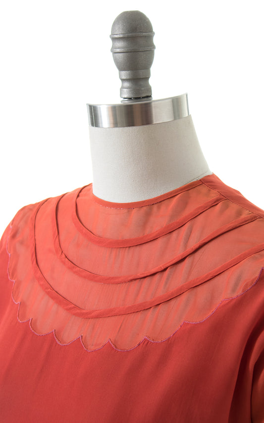 1940s Pumpkin Rayon Scalloped Button Back Blouse | small/medium