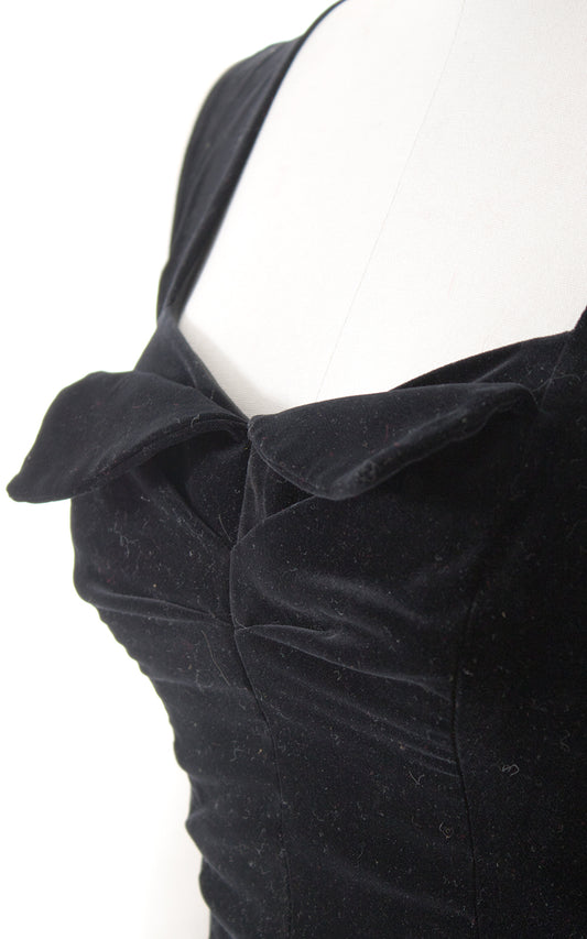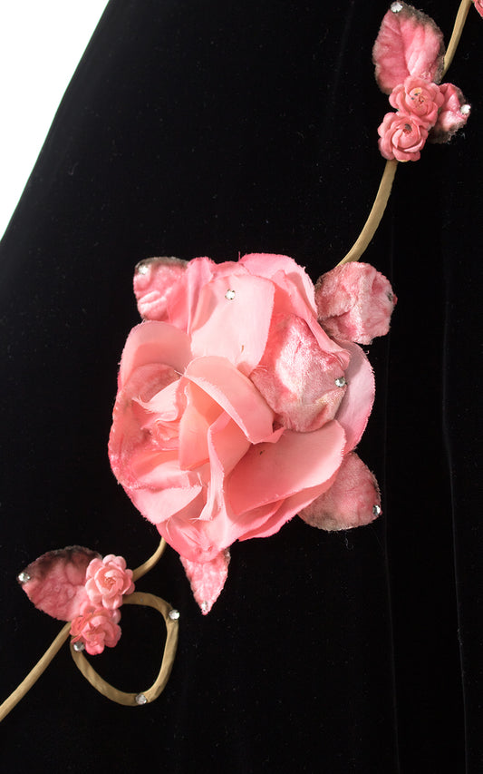 1960s Rose Appliqué Black Velvet Party Dress | small