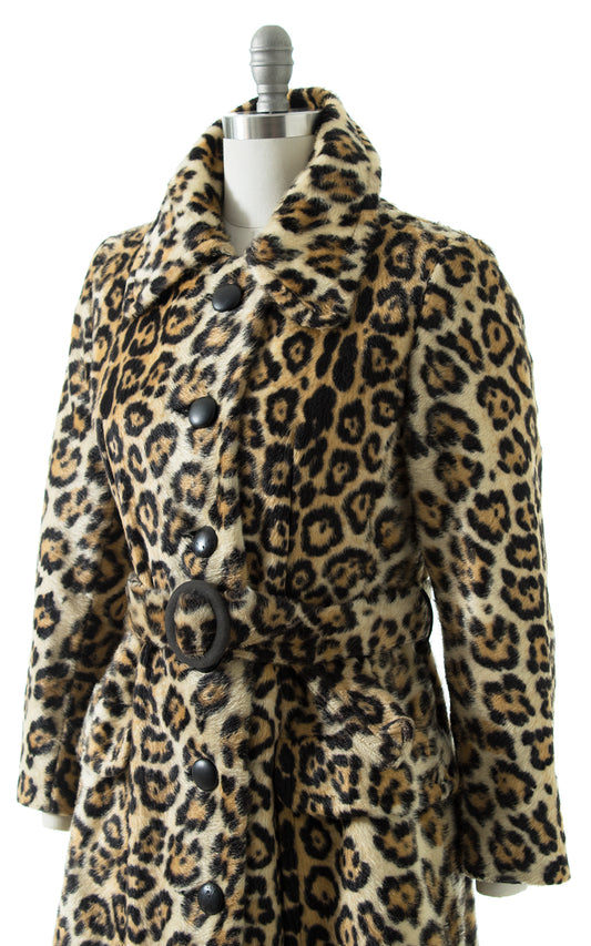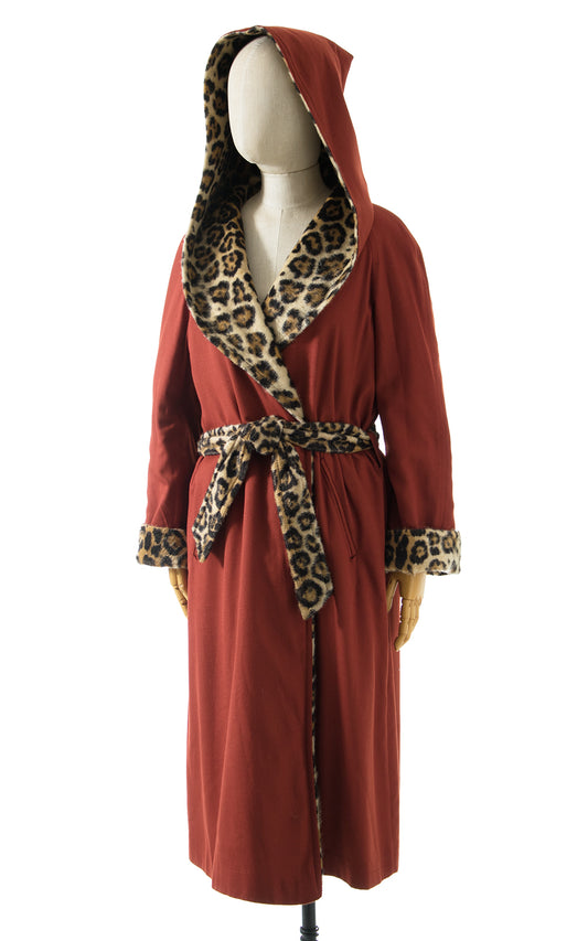 1970s Reversible Leopard Print Faux Fur Hooded Wrap Coat | medium/large