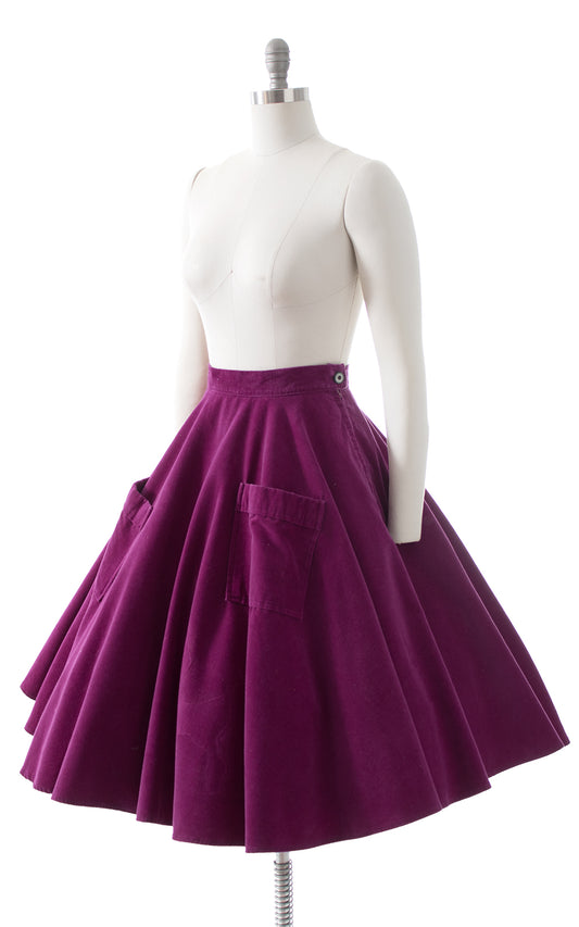 1950s Purple Velvet Circle Skirt with Pockets | medium