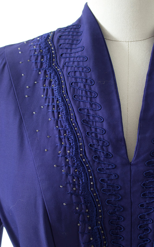 1940s Beaded Soutache Purple Rayon Dress | medium