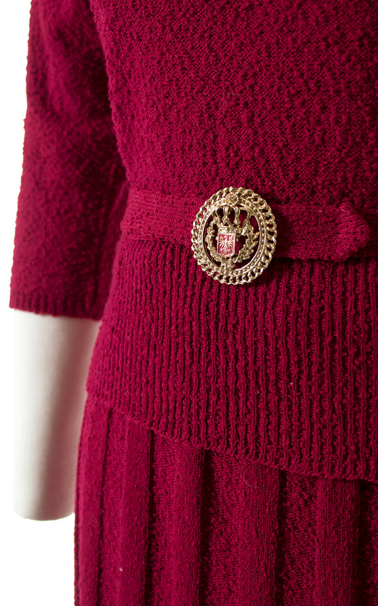 1950s Cranberry Knit Wool Sweater 3-Piece Set | small/medium