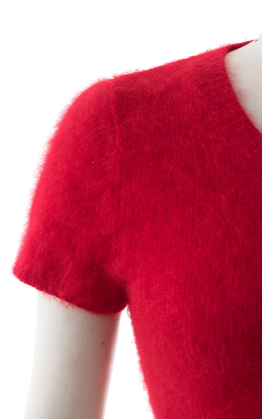1980s Red Angora Knit Cropped Sweater | small/medium