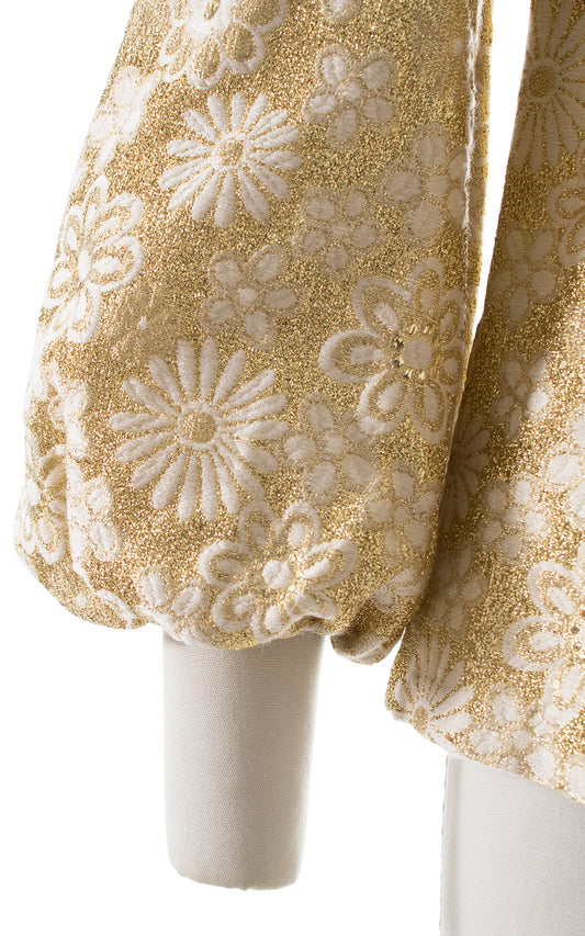 1960s Metallic Floral Brocade Bishop Sleeve Blouse | small