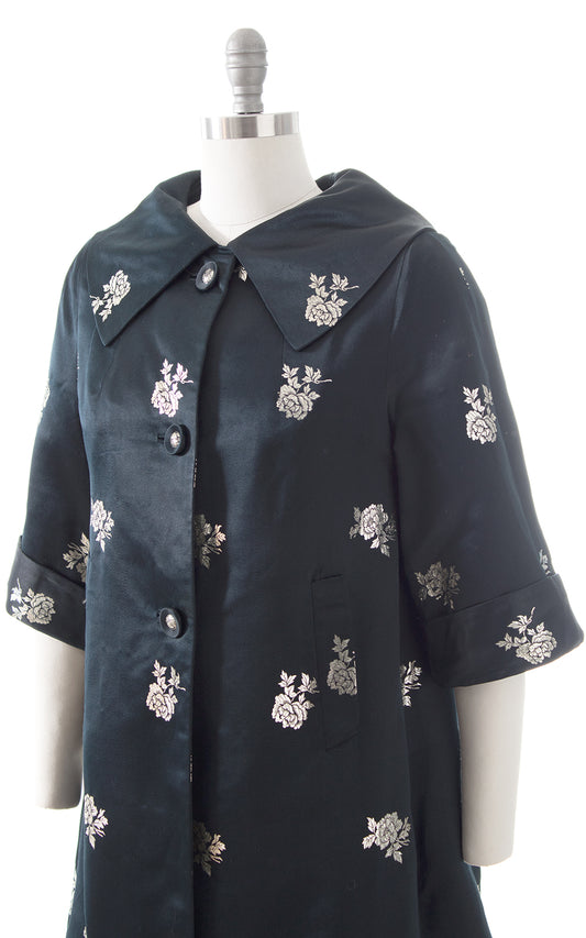 1950s Metallic Rose Silk Satin Jacquard Swing Coat | medium