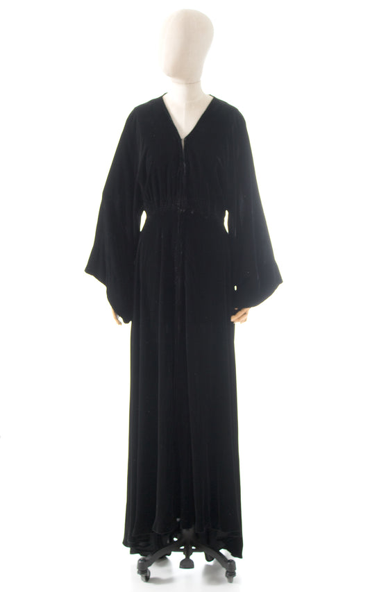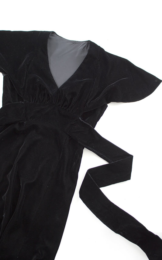 $65 DRESS SALE /// 1970s Black Velvet Flutter Sleeve Maxi Dress | x-small/small