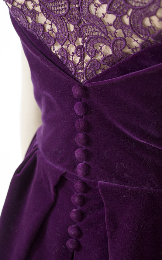 1950s Purple Velvet & Lace Strapless Gown | x-small