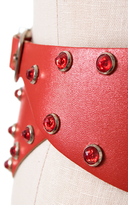 1960s Red Rhinestone Vinyl Extra-Wide Cinch Belt | large/x-large