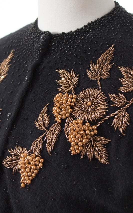 1950s Gene Shelly Floral Beaded Knit Cardigan | medium/large/x-large