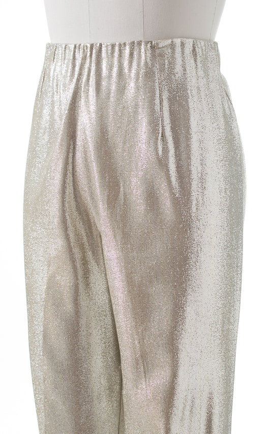 1950s Metallic Silver Lamé Cigarette Pants | small