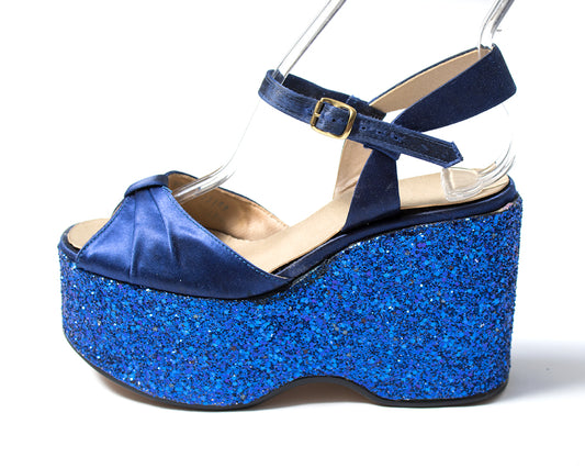 1970s Blue Glitter Platform Sandals | size US 5.5