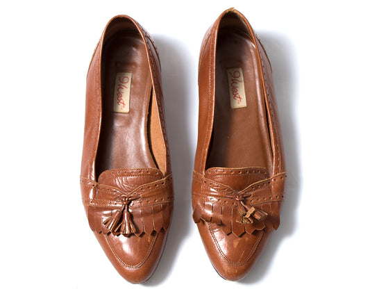 1980s 1990s Brown Leather Tassel Loafers | size US 7.5/8