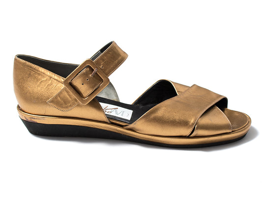1980s 1990s Metallic Gold Leather Wedge Sandals | size US 9.5/10 narrow