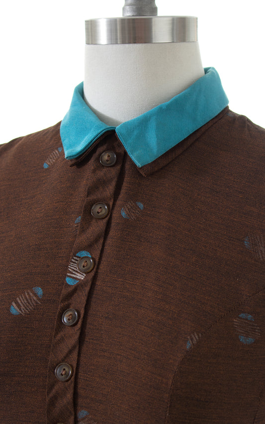 1950s Flecked Brown Shirtwaist Wiggle Dress | x-large