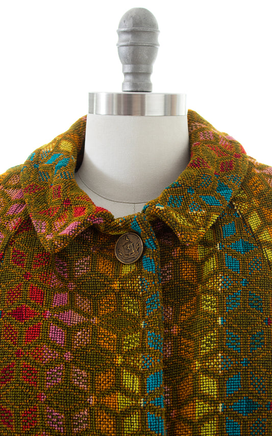 1960s 1970s Rainbow Striped Brocade Cape with Faux Fur Lining | xs/small/medium
