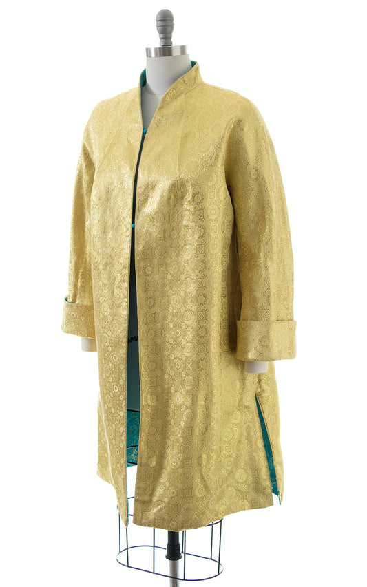 1950s REVERSIBLE Metallic Floral Brocade Evening Coat | small/medium