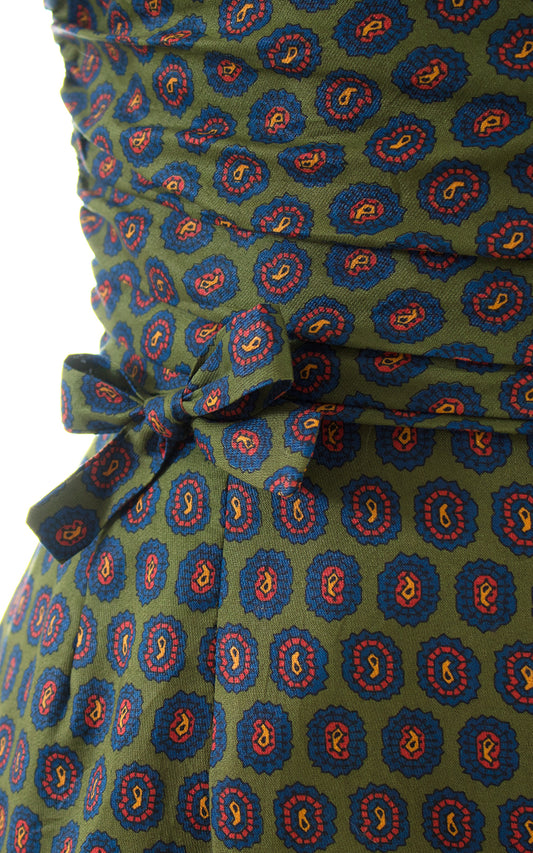 1950s Paisley Green Cotton Wiggle Dress | small/medium