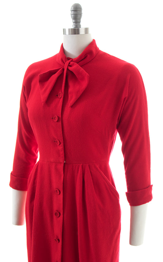 1950s Red Hot Wool Shirtwaist Wiggle Dress with Pockets | small/medium