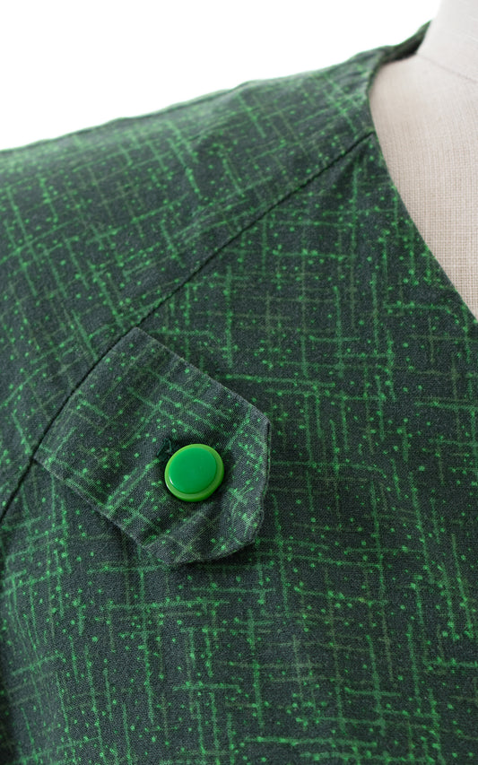 Modern 1960s Style Atomic Green Shirtwaist Wiggle Dress with Pockets | x-large