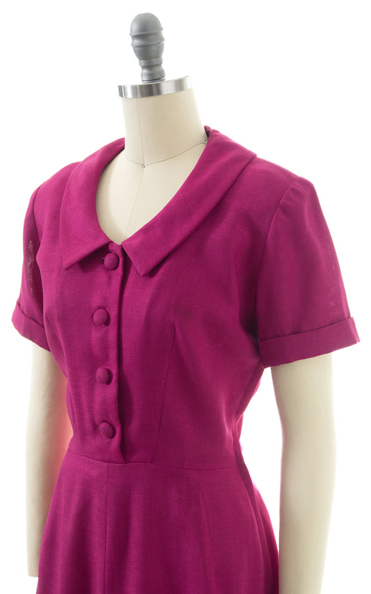 1950s Fuchsia Linen Shirtwaist Dress | small