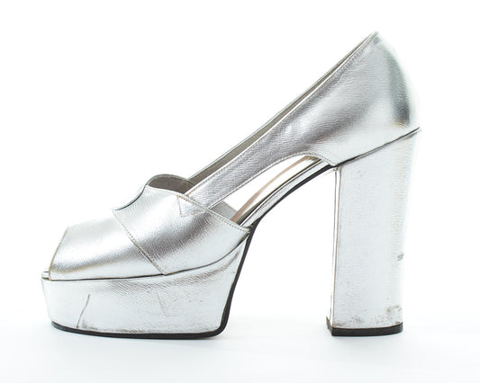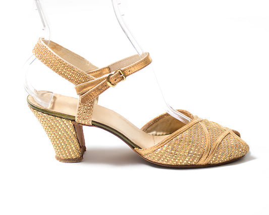1930s Metallic Gold Woven Peep Toe Heels | size US 8.5