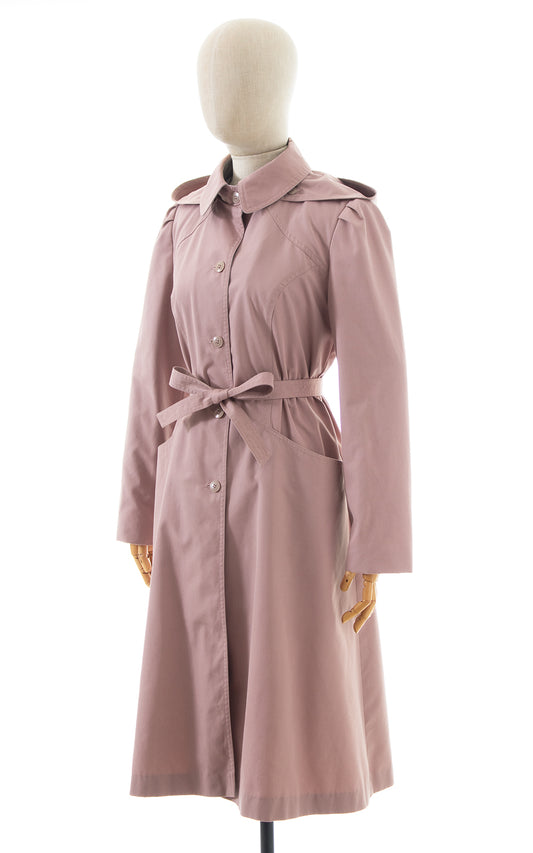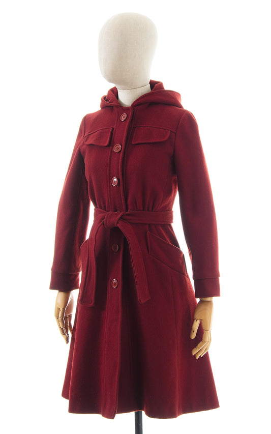 1970s Burgundy Wool Hooded Belted Princess Coat | xs/small