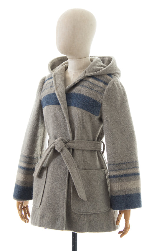 1970s Striped Wool Hooded Belted Coat | xs/small