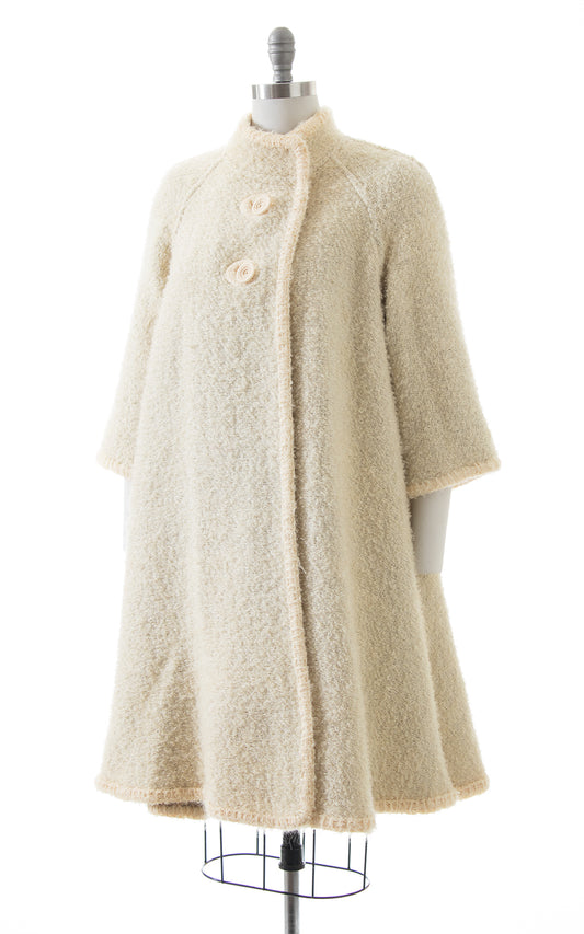 1960s Reversible Bouclé Wool Plaid & Cream Swing Coat | small/medium