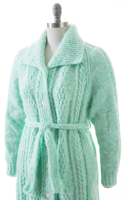 1970s Mint Chunky Knit Belted Sweater Coat | medium/large/x-large