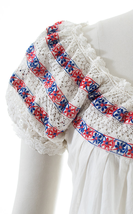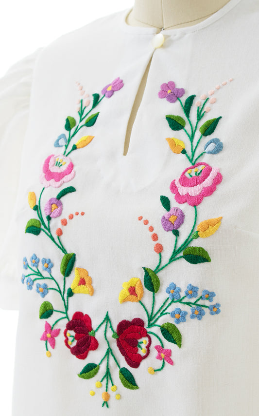1970s Floral Embroidered Puff Sleeve Peasant Top | x-small/small