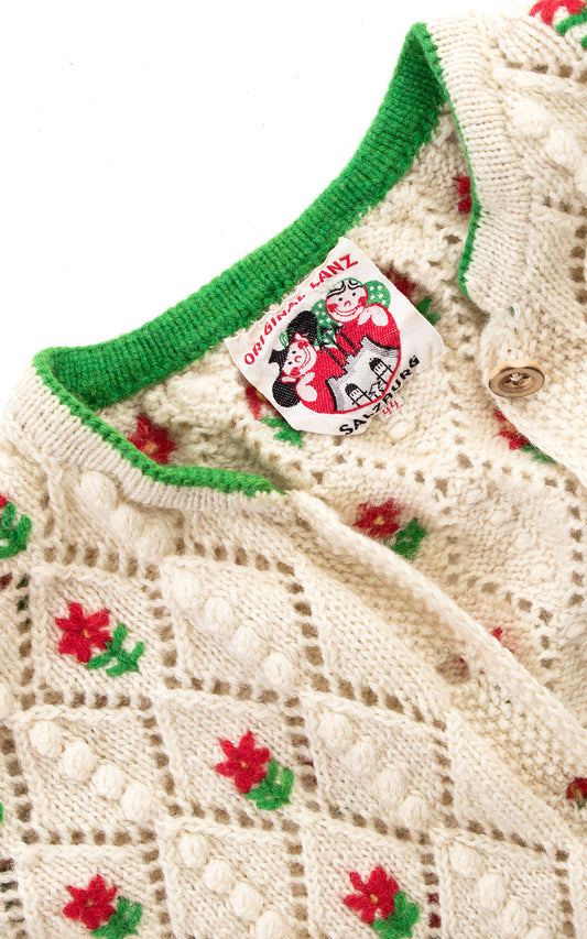 1940s 1950s LANZ Floral Popcorn Knit Wool Cropped Cardigan | medium/large