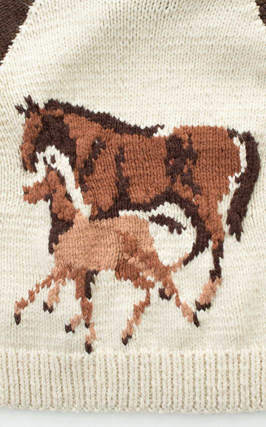 1970s Lucky Horseshoe & Horses Novelty Wool Cowichan Cardigan | medium/large