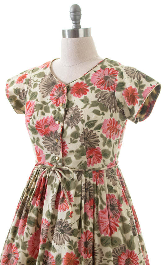 1980s-does-1950s LANZ Floral Striped Shirtwaist Dress | large
