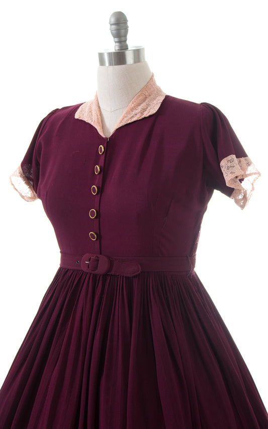 1940s 1950s Plum Rayon Shirtwaist Dress | large