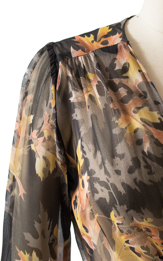 1980s Leaf Print Silk Chiffon Dress | x-small/small