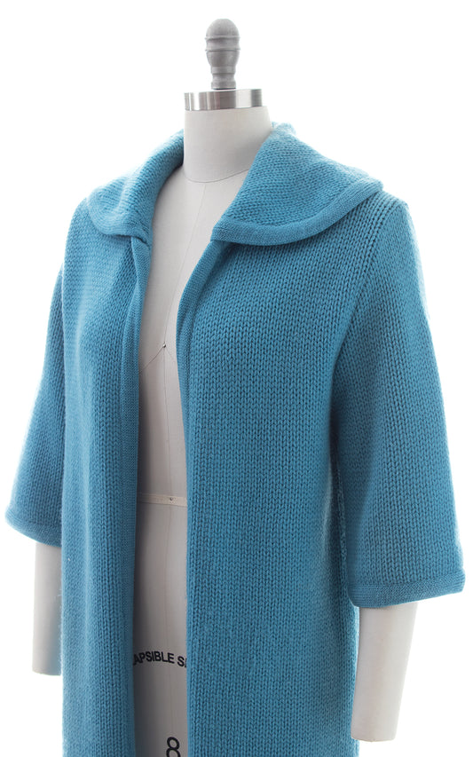 1960s Blue Chunky Knit Sweater Coat | small/medium